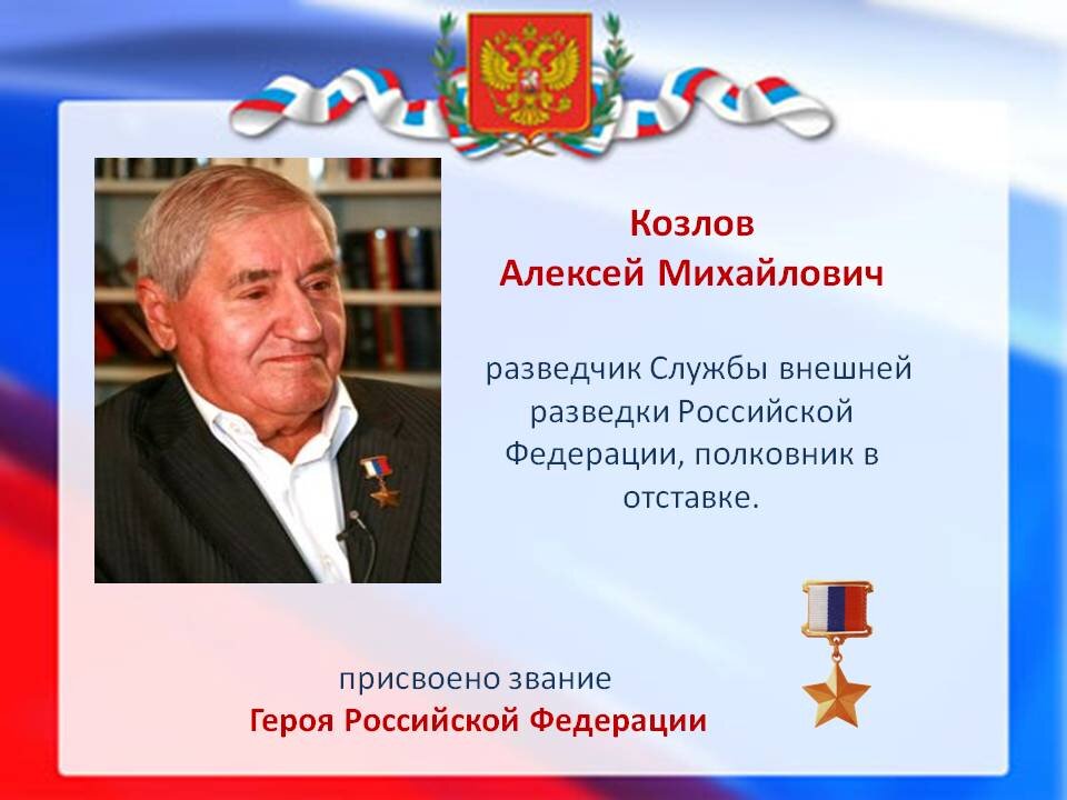 После четырех лет пребывания в Центре Козлов вновь выехал на боевую работу за границу, которая продолжалась десять лет. В Москву возвратился в 1997 году. В 1999 году Указом Президента России Козлову было присвоено почетное звание Заслуженный сотрудник органов внешней разведки Российской Федерации. А 2000 году за мужество и героизм, проявленные при выполнении специальных заданий, полковник Козлов Алексей Михайлович был удостоен высокого звания Героя Российской Федерации.