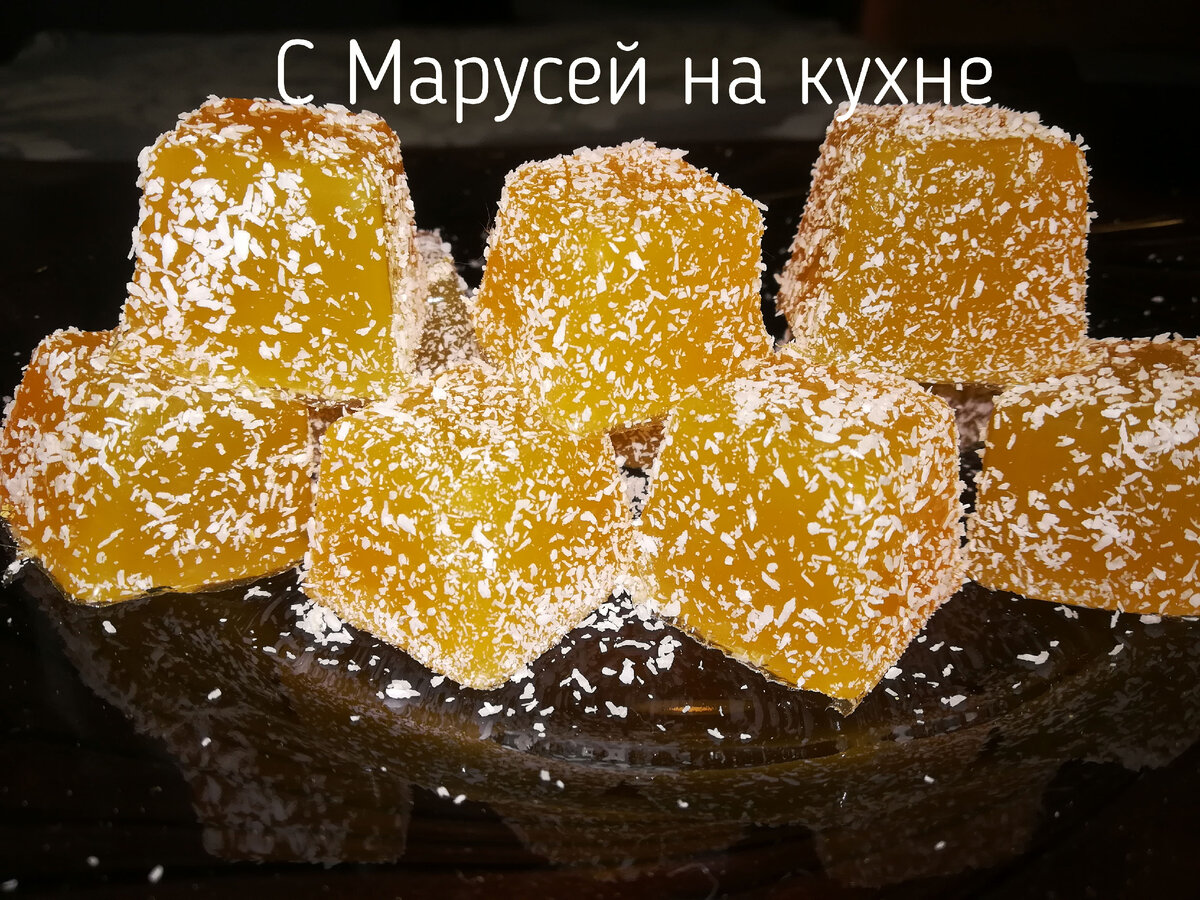 Доброе утро Друзья! Предлагаю Вашему вниманию очень простой рецепт мармелада, который готовится легко и быстро даже дома. Здесь Вы можете использовать абсолютно любой фруктовый сок, согласно своему вкусу. А если Вы хотите сделать мармелад более сладким, просто добавьте сахар. Если у Вас нет маленьких форм, можно сделать мармелад в большой, а потом просто нарезать его произвольно. Если Вы используете форму из силикона, то её можно ничем не смазывать. Если форма металлическая, то ее нужно смазать маслом (без запаха) - тогда мармелад будет легче извлечь из формы. *** Нам потребуются : СОК ФРУКТОВЫЙ - 1 ЛИТР ЖЕЛАТИН - 100 ГРАММ КОКОСОВАЯ СТРУЖКА - ДЛЯ ПОСЫПКИ МАРМЕЛАДА ФОРМЫ ДЛЯ ЛЬДА *** Высыпаем желатин в небольшую кастрюлю и заливаем стаканом сока. Оставляем на 30-40 минут для полного разбухания. Точное время указано на упаковке желатина. Ставим кастрюлю побольше с водой на плиту, доводим до кипения и оставляем кипеть на среднем огне. Ставим на неё кастрюлю с желатином, и постоянно по