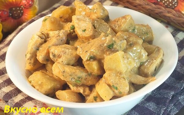 Картошка, тушенная с курицей и сливками - нежное блюдо, которое любят дети