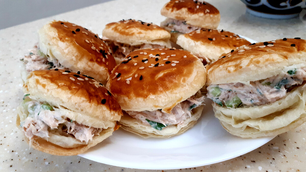 Лаваш и слоеное тесто - два кита кулинарного изобретения. Доступно, универсально, всегда вкусно. Такое тесто выручает в приготовлении закусок, пирожков и всяких фуршетных фишек “по-быстрому”. Из лаваша очень люблю чипсы и пирожки с сыром и зеленью. Про чипсы подробно написано здесь: Пирожки делаю так: лаваш нарезать по всей длине полосками примерно 7 см в ширину. Для начинки сыр натереть на терке, посолить, добавить зелень: укроп, петрушка. Можно что-то одно, по желанию. Столовую ложку начинки положить ближе к краю полосы и сворачивать на угол, вперед, на угол, вперед - пока не закончится полоса. Знаете, так еще сворачивают целлофановые пакетики, треугольником? Из такого треугольника начинка не вываливается, пирожок приобретает целостность и его очень удобно жарить. Обжаривать с обеих сторон до румяной корочки. Про слоеное тесто и говорить нечего. Чего только из него не пекут! У каждой хозяйки имеются свои коронные рецепты. Мои дежурные варианты: А недавно попробовала приготовить за