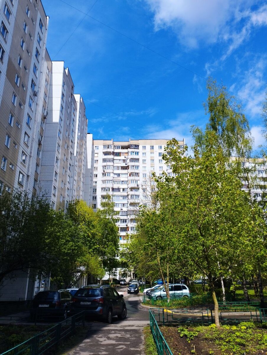 Чем так чудесны переходные периоды между сезонами? Ранняя осень, зима, весна, лето. Когда время года уже вступило в силу, глаз становится замылен. Привычка - одновременно прекрасная и ужасная вещь. Привычка мешает смотреть и видеть объект; чтобы предмет вдохновения открылся тебе, необходимо от привычки избавиться. После долгого перерыва каждое новое лето воспринимается как в первый раз. В голове рождаются образы. Потом, уже в июне, это чувство исчезает. Это преддверие лета раскрыло мне 17-этажные многоступенчатые п-44 с зелёными вставками как горы. Ничего нового. Но на этот раз это не абстрактные горы, а Крымские. С белыми меловыми склонами, зеленью. Подъезды внизу превращаются в деревенские домики, клумбы - приусадебными садами. Полосатый котяра остаётся самим собой. Выше были представлены п-44 с зелеными вставками - наиболее "лесная" модель данного дома. Но сам по себе район Крюково является совсем не лесным. Наиболее природным, ЗЕЛЕНОградским, что ли, является район Силино. Ниже пре