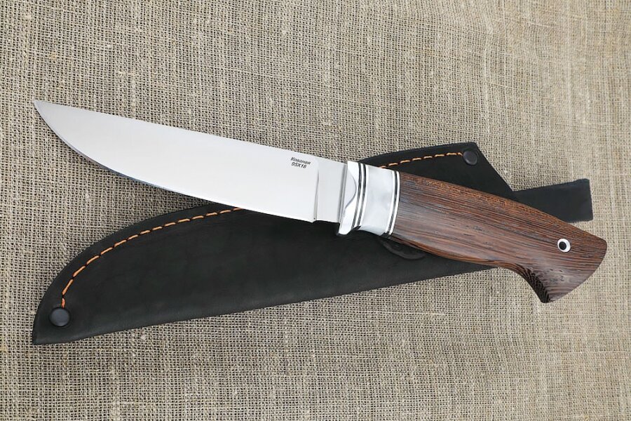Сталь 95Х18 для ножей плюсы и минусы давно известны. Сталь применяется в машино– приборо – и самолетостроении, а также в изготовлении инструментов и оружия. Существует множество разновидностей сталей, которые различаются между собой по механическим и химическим свойствам. Также у каждого вида стали есть как положительные, так и отрицательные стороны. У охотников и промысловиков большой популярностью пользуются ножи из стали 95х18. Это клеймо ставится на клинке, обозначает марку стали по шкале Роквелла и составляет 59 единиц. Ножи из такой стали не ржавеют, долгое время сохраняют остроту клинка, хотя и трудно поддаются затачиванию. Плюсы стали для ножей 95х18 Состав стали 95х18 был изобретён сравнительно недавно, однако сегодня она обрела широкую популярность. Не зря из неё изготавливают изделия, к которым предъявляются повышенные требования твёрдости и износостойкости. Наличие высоких показателей стали требует организацию изготовления её на профессиональной основе, применяя точное обор