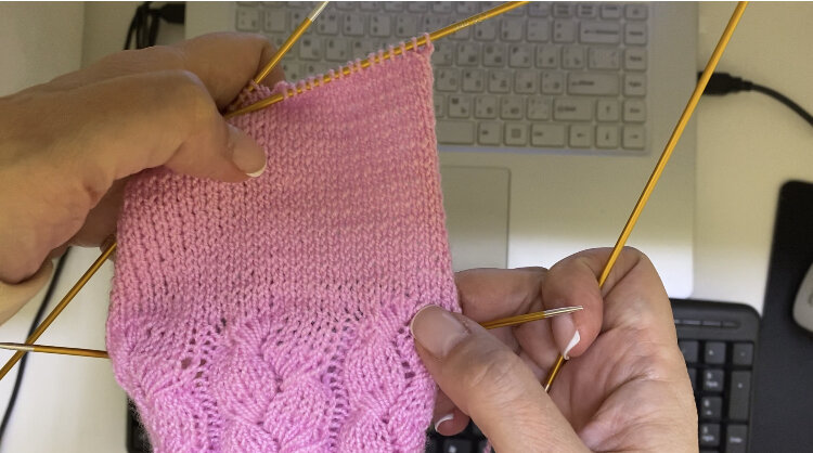для носочков Ягодное настроение! 🧦В работе только 1-я и 2-я спица (всего 31 петель, лишние 2п в начале 1 спицы (2 изн) переснять на 4 спицу). 3-я и 4-я спица в вязании пока не участвуют. И чтобы перейти к 30 п свяжите 2 вместе в 1 р в любом месте ряда. Работа продолжится поворотными (лицевыми и изнаночными) рядами. 🧶Вяжем пятку сердечко. Всего вяжем 26 р. 1 ряд. Кромочная, лицевые. 2 ряд. ( изнаночный) Поворачиваем работу, кромочная, все изнаночные. Далее повторяем с 1-го по 2-й ряд. Всего вяжем 26 рядов высоты пятки. 🧶Поворот пятки. Повесить маркер посередине (15п) 1 ряд. Кромочная, петли провязать до середины (до маркера), 1 лиц, 2 п провязать вместе лиц, 1 лиц, повернуть. 2 ряд. ( изнаночный) кромочная, 3 изн , 2 п провязать вместе изн, 1 изн, повернуть. 3 ряд. Кромочная, 4 лиц, 2 п провязать вместе лиц, 1 лиц, повернуть. 4 ряд. Кромочная, 5 изн, 2 п провязать вместе изн, 1 изн, повернуть. Далее вязать по этому же принципу. 💚Клин подъема стопы. Вязать дальш