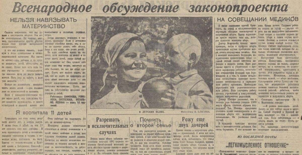Аборты были разрешены в Советской России сразу по окончании Гражданской войны — в ноябре 1920 г. И их влияние на демографию и главное моральный климат в советском обществе трудно переоценить. Согласно данным абортных комиссий, в 1924 году в Москве было зарегистрировано 14 тыс. абортов, а через три года, в 1927 году, — уже почти 46 тыс., рост более чем в 3 раз. В 1927 году число прерванных беременностей в Москве и в Ленинграде приблизилось к годовому числу родов, а к 1934 в Москве на одно рождение приходилось уже около 3 абортов. 6—8 абортов стало нормой для горожанки в возрасте от 30 до 35 лет. По выражению А. Попова (научный сотрудник Центра демографии и экологии человека РАН), в середине 1920-х годов в рамках советской системы здравоохранения была создана настоящая «индустрия аборта». Причем Паевский В.В. (крупнейший советский статистик и демограф, один из создателей Демографического института в Академии наук СССР) прямо противопоставлял ситуацию в городах Советской России Европе где