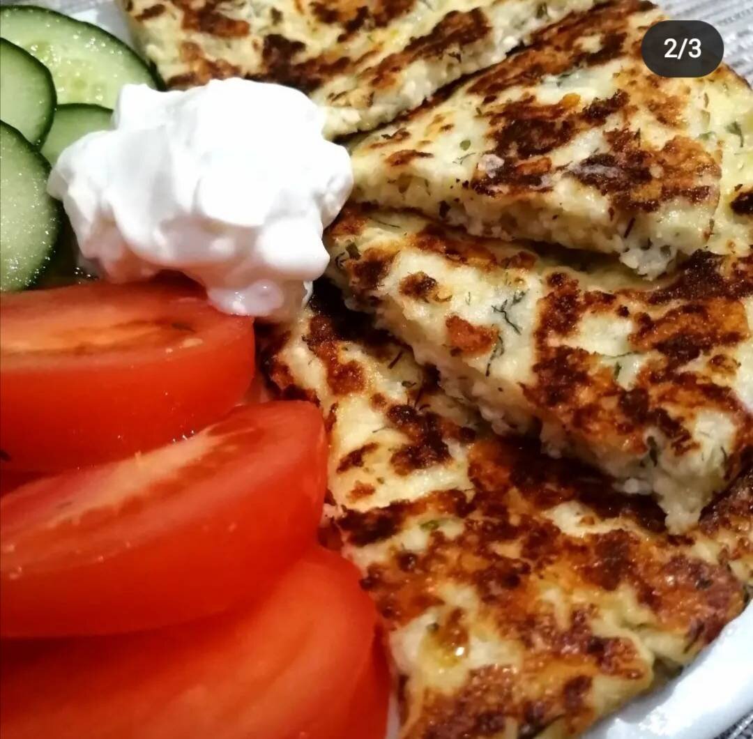 Отличный завтрак для тех, кто следит за фигурой и питанием) #готовимвместе Ингредиенты: творога, твёрдого сыра, кефира, муки, яйцо, Соль, перец, зелень по вкусу Способ приготовления: В глубокой ёмкости соединяем все ингредиенты (сыр трём на крупную терку). Всё хорошо перемешиваем и Выкладываем на разогретую сковороду. Жарим с двух сторон до золотистой корочки. Переворачиваем с помощью лопатки и большой тарелки (так удобнее 👍). Подавать со сметаной, натуральным йогуртом и свежими овощами 🍅🥒. Приятного аппетита) Приятного аппетита)