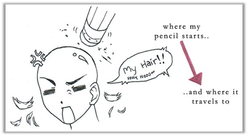 Однако, если штриховка необходима, она должна быть в пределах прядей волос, и освещение должно быть сделано согласно источнику.