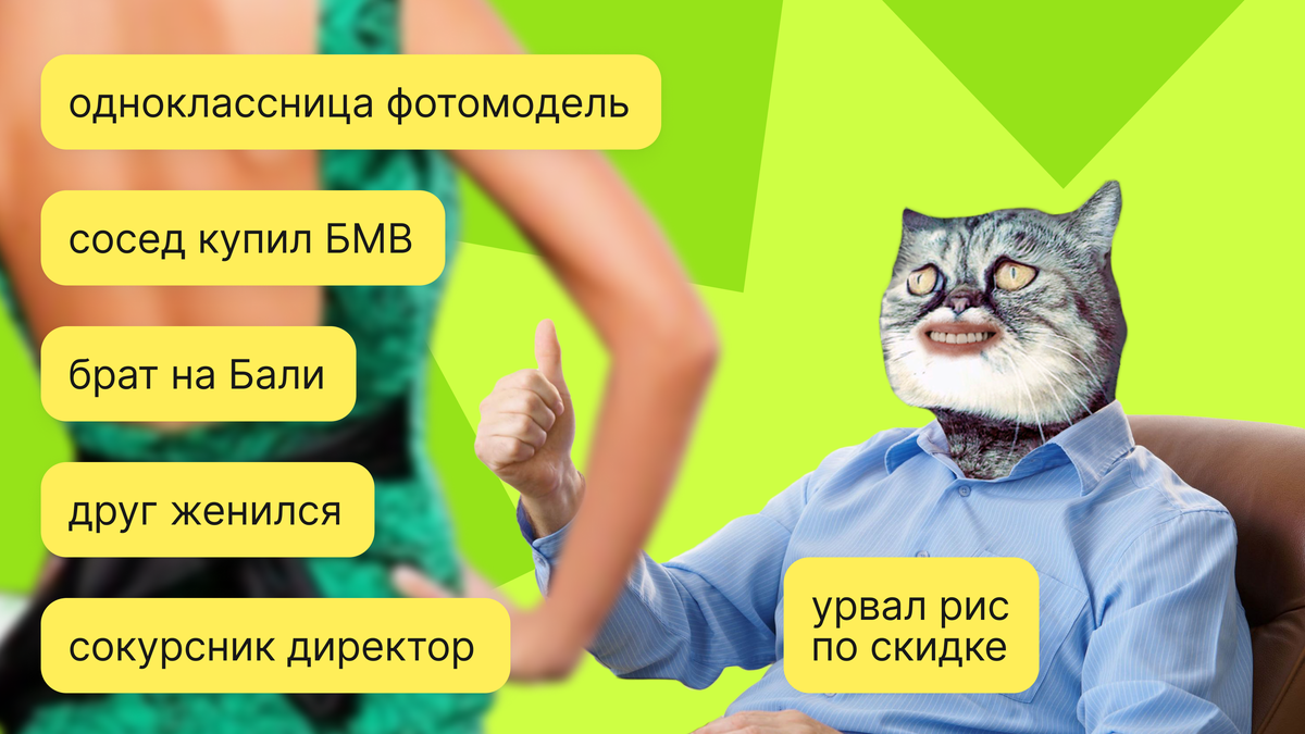 Ваши однокурсники чертовски успешны и богаты, коллеги уходят в свой бизнес, а соседка не вылезает со сказочного Бали и в своем познании абсолютно преисполнилась. И вас это бесит и демотивирует. Знакомо? Не переживайте, нас таких много. Почитайте наш поддерживающий пост, чтобы сладить с завистью и спокойно жить своей жизнью. Поймите, чего вы хотите Вряд ли вы завидуете всем без разбора: скорее всего, вас бесит только тот успех, к которому вы стремитесь сами. Советуем записать ваши искренние цели и желания. Свой бизнес, путешествия, счастливая семья — составьте короткий список в приоритетном порядке, не отвлекайтесь на мелочи. Это поможет сменить ракурс и посмотреть не на чужую жизнь, а на свою. Найдите другую мотивацию Некоторых людей зависть мотивирует: они начинают активнее работать, чтобы стать лучше конкурента. Но мы напоминаем, что даже в этом случае зависть — отравляющее чувство, которое портит качество жизни. Найдите мотивацию в своих собственных целях и удовольствиях. Иначе вы р