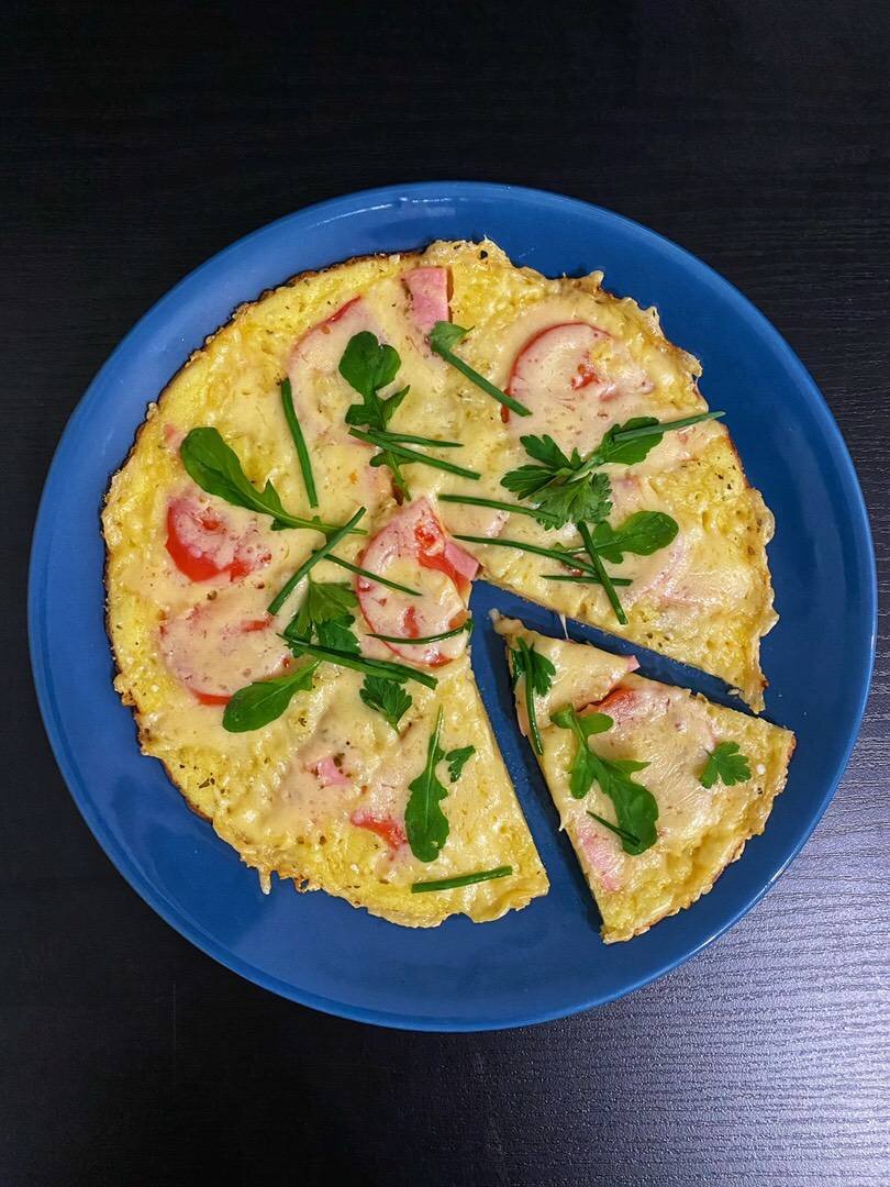 Ингредиенты: сметани, майонезу (я не додавала, а замінила сметаною), яйця, борошна , ковбаса, шинка, м‘ясо, сосиски (в мене сардельки вищого стрту), помідора свіжа, сир твердий (в мене двох видів- вершковий і пармезан), сіль, орегано, зелень