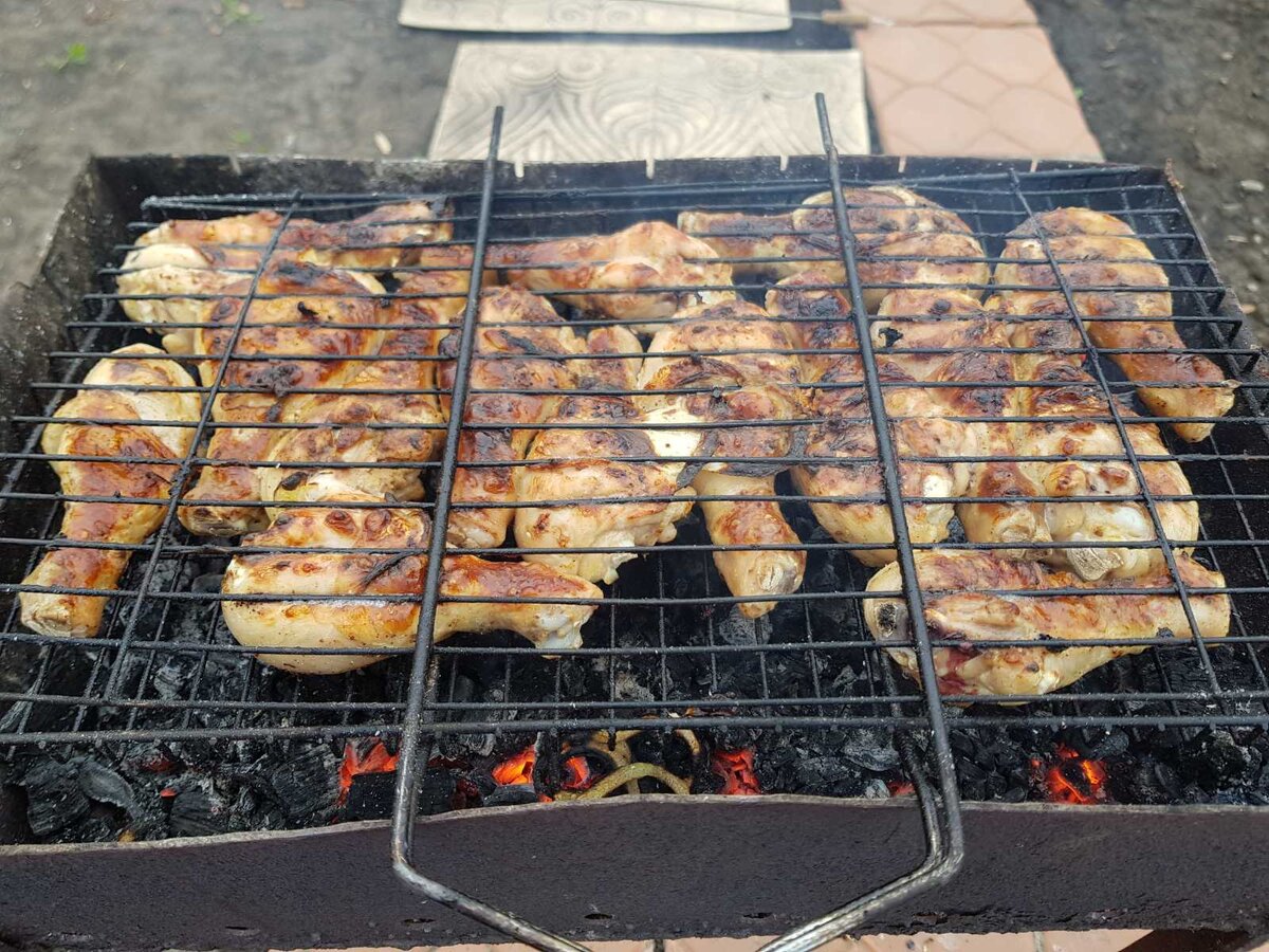Очень вкусный, сочный и совсем не дорогой получается шашлык из куриной голени! Готовим на даче с удовольствием! Родным очень нравится! Ингредиенты: 4 упаковки куриной голени (около 4 кг., это приблизительно 30 шт.) 1 банка сметаны любой жирности (около 300 гр.) 4 больших луковицы соль специи для шашлыка Приготовление: Моем куриную голень. Нарезаем лук кольцами. На дно емкости, где будет мариноваться в ночь шашлык укладываем лук, солим, добавляем специи для шашлыка. Укладываем первый слой курицы. Натираем сметаной курицу, перекладываем луком, солим и добавляем специи. Повторяем слои друг за другом. Закрываем крышкой и ставим на ночь в холодильник. По мере готовности углей перекладываем курицу на решетку, много лука лучше не добавлять, так как он будет сильно гореть. Жарим на углях до готовности, периодически переворачивая решетку. Подаем шашлык со свежими овощами, зеленью и любимыми соусами. Приятного Вам аппетита!