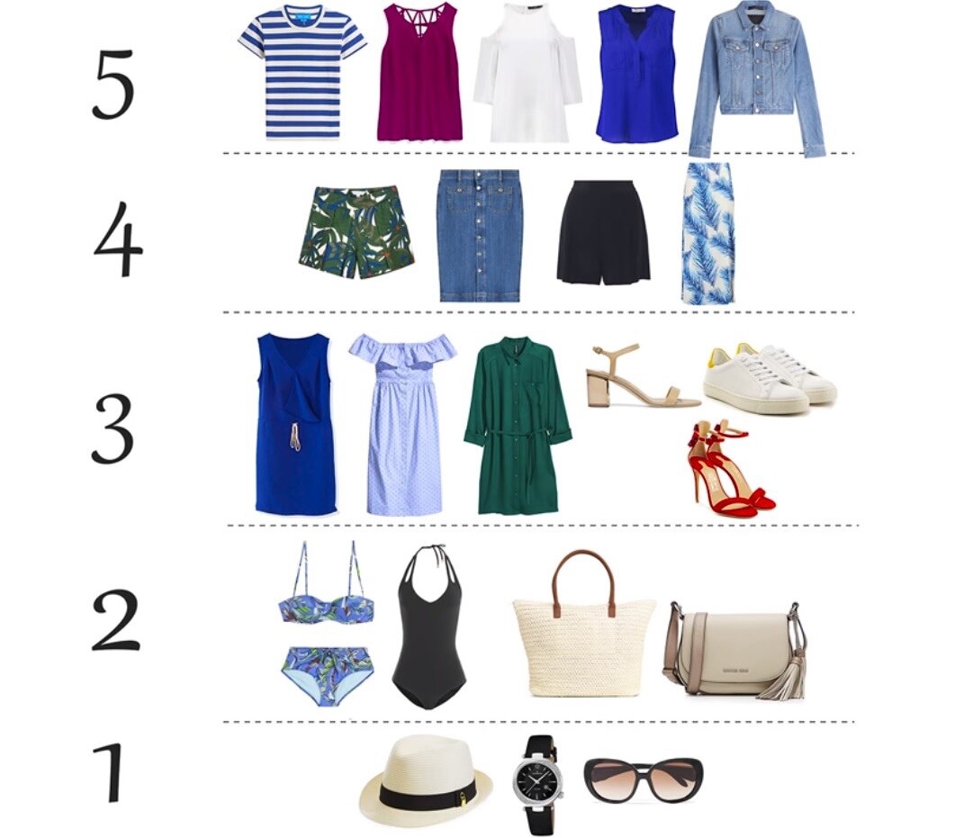 Бывали в такой ситуации, когда собираете огромный тяжелый чемодан и набираете столько вещей, что в отпуске буквально не успеваете их надеть? Или, наоборот, взяли недостаточное количество вещей, а потом мучаетесь от "нечего надеть"? Хотите путешествовать с небольшим чемоданчиком и чтобы в него помещалось абсолютно все? "Как же это возможно?" - спросите вы. Оказывается, идеальный гардероб в отпуск может быть универсальным и при этом очень простым. Для того, чтобы было максимально просто собрать чемодан - достаточно воспользоваться формулой 5-4-3-2-1. Ею делится стилист-имиджмейкер, Татьяна Преображенская. Главный принцип формулы - это подбор таких необходимых и функциональных вещей, которые сочетаясь между собой каждый раз создают различные комплекты. Все очень просто. Вам потребуется: 5 вариантов верха Выберите такие, которые будут сочетаться со всеми предметами вашего гардероба. Постарайтесь выбрать их различными по цвету, фактуре, фасону, ткани и рисунку. Представьте, если с собой у в