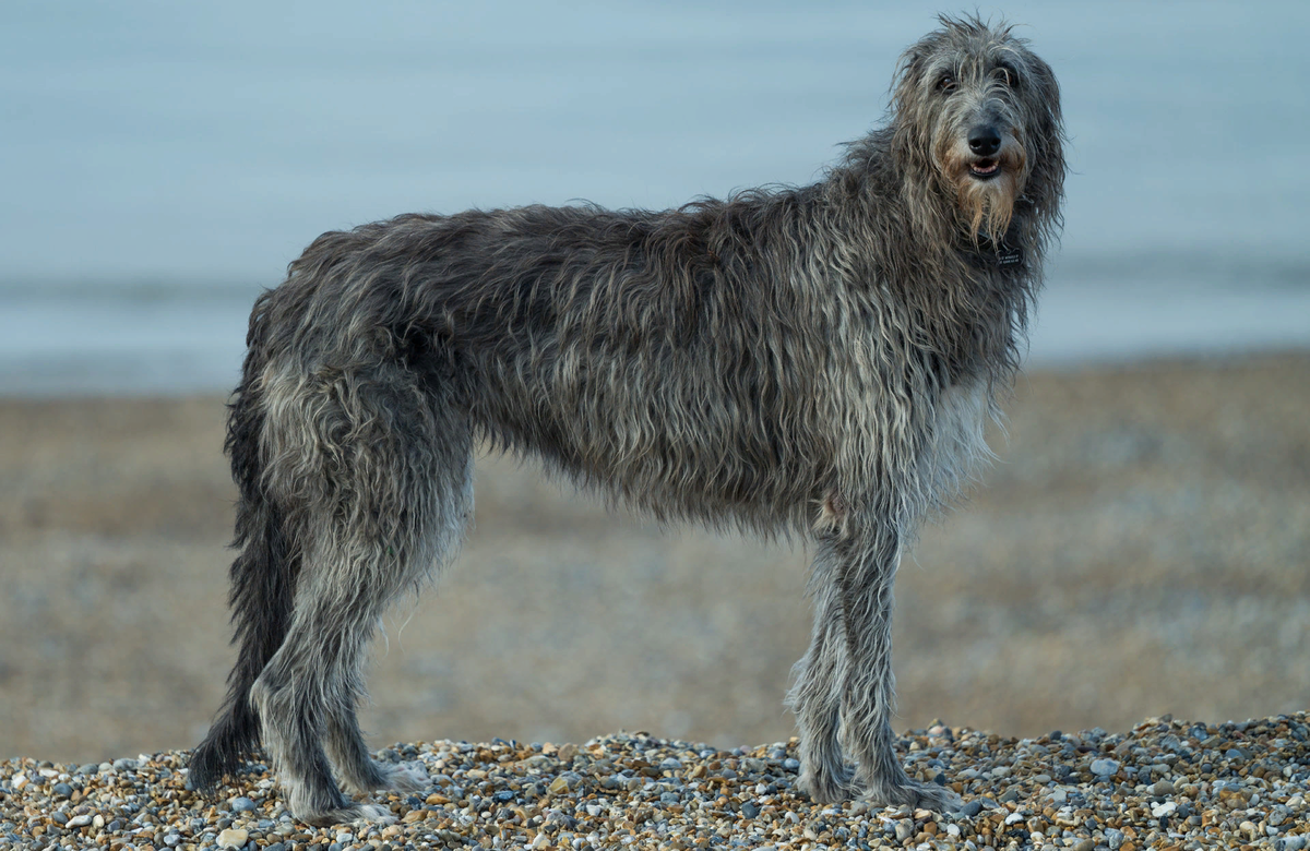 Шотландские оленегонные собаки - удивительные охотники, которые охотятся на благородных оленей. У них лохматая серая шерсть, длинные ноги и добродушный нрав.