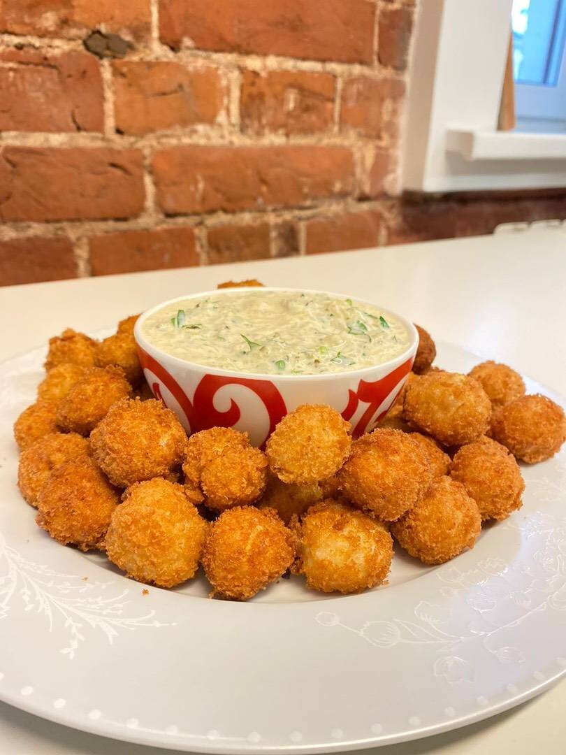Скатываем в шарики размером с фрикадельки и обваливаем в сухарях. Если у вас их нет, возьмите батон и прокрутите блендером. Обжариваем это все в масле. Мало долго быть столько, чтобы закрывали полностью шарики и они бурлили в ёмкости. Засыпайте поэтапно.