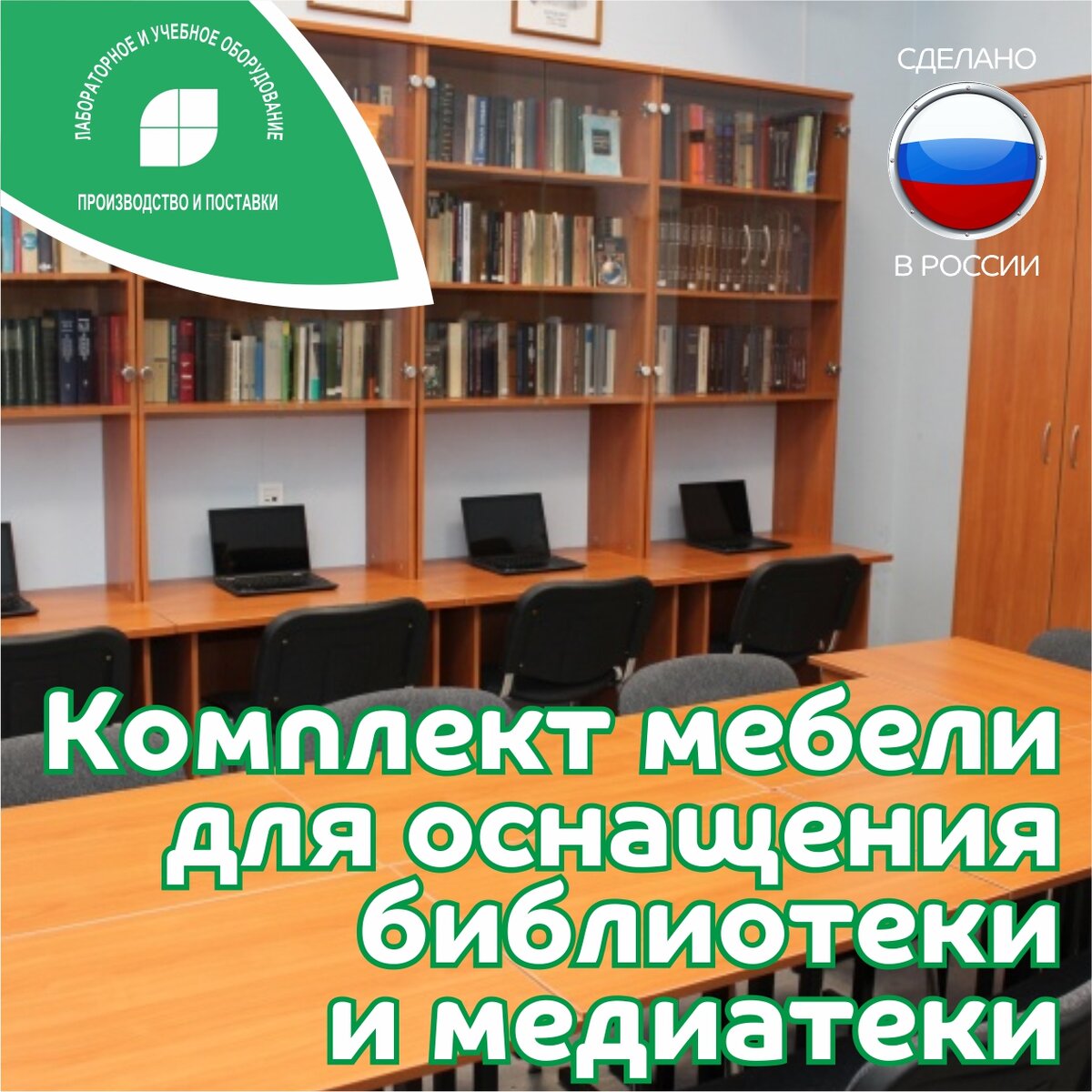 Удобная современная мебель обеспечивает оптимальный доступ к литературе и комфортную работу учащихся в урочной и внеурочной деятельности. Помещение, оснащенное данным комплектом мебели и оборудования, позволяет также организовывать временные выставки, проводить виртуальные экскурсии. Помещение удобно и для проведения педагогических семинаров, круглых столов, репортажей в очном и дистанционном режиме. Комплект мебели: 1. Рабочее место ученика, выполненное по специально разработанному эскизу с учетом пожеланий заказчика. Рабочее место состоит из стола и надстройки с 3 полками. Надстройка оснащена