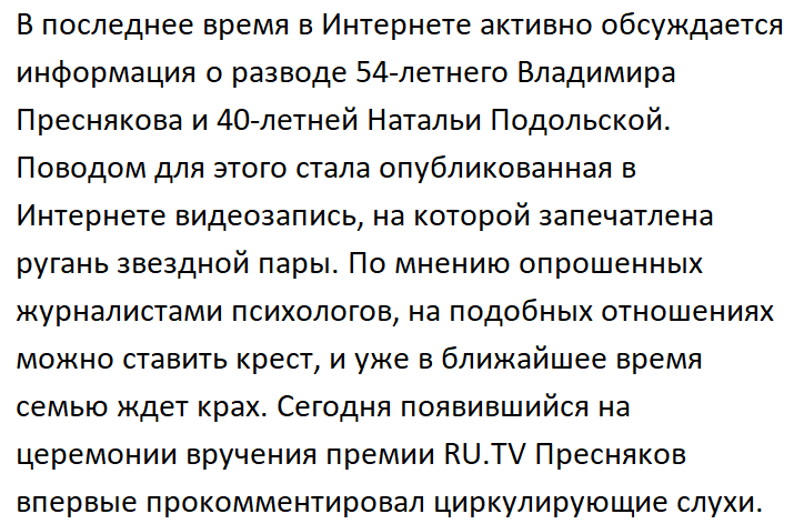 Владимир Пресняков все-таки подтвердил разлуку с Натальей Подольской