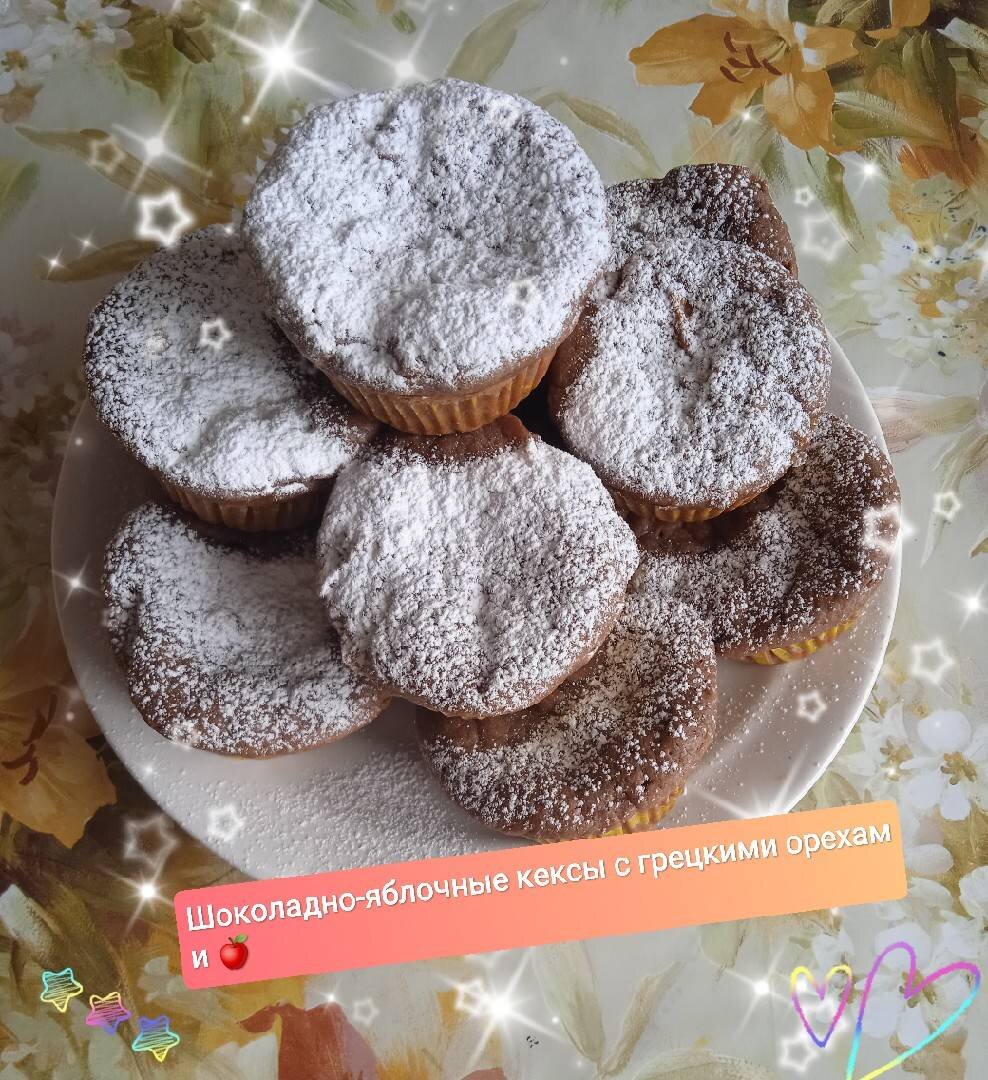 Шоколадно- яблочные кексы с грецкими орехами 🍎