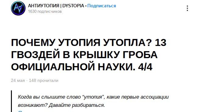 Собственно, разбираемая статья, является частью цикла из 4 частей. Там, помимо потоков бессознательного, есть уже знакомые засыпанные города, круглые воронки, потоп, пирамиды по всей планете и т.д. На каждую из этих тем есть отдельные статьи на канале. Данный автор нового ничего не добавляет, а только пересказывает то, что альто и так пересказывают.