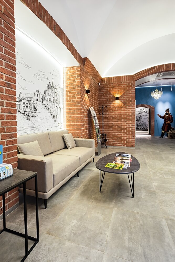 Интерьер в историческом здании – это всегда уникальная история. Сводчатые конструкции, нестандартные планировки и особенная отделка – простор для творчества таких талантливых дизайнеров, как Наталья Косякина. Отель расположился в историческом промышленном здании 18 века. Сводчатые потолки выигрышно подчеркнули подсветкой по контуру, арочные проходы – декоративным кирпичом ARBRICK ( www.arbrick.ru ) и графическими рисунками с невероятными видами старого Нижнего. Ведущей темой, поддерживающей общий концепт здания, стали кристаллы. Люстры, картины, настенные бра объединяет общая кристальная тематика, но при этом не делает интерьер холодным. Каждый номер отеля обладает индивидуальным дизайном – здесь вы не найдете похожих комнат. Монохромные оранжевые, лимонные или салатовые, с шоколадным принтом или отделанные под мрамор – главное, выбрать то, что по душе. Историческое здание зачастую дает больше технических возможностей для дизайнера, чем современное, - рассказывает Наталья. Наприме