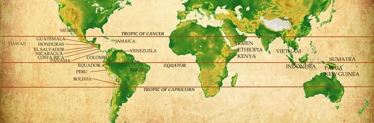 Сегодня кофе производят более 70 стран. Все они расположены в тропическом климатическом поясе, его также называют кофейным поясом планеты. Однако крупнейшими в мире странами-производителями кофе по-прежнему остаются государства Латинской Америки. Эфиопия в рейтинге занимает лишь 5 место. Мировые лидеры производства кофе Чтобы обладать хорошим вкусом, ароматом и тонизирующим эффектом, кофейные зёрна должны вырасти в довольно специфичных условиях. Для них важно соотношение тепла и влаги, химический состав почв, высота над уровнем моря, недопустимы засухи или заморозки. Немаловажное значение имеют способы сбора и первичной обработки. Наиболее дорогие сорта до сих пор производят с минимальным применением технических приспособлений. Более ста лет бессменными лидерами по производству кофе остаются Бразилия и Колумбия. Однако в последние десятилетия в пятёрке прочное место заняли Вьетнам и Индонезия. Бразилия На её долю приходится 35% мирового производства кофейных зёрен. Кофейные плантации –