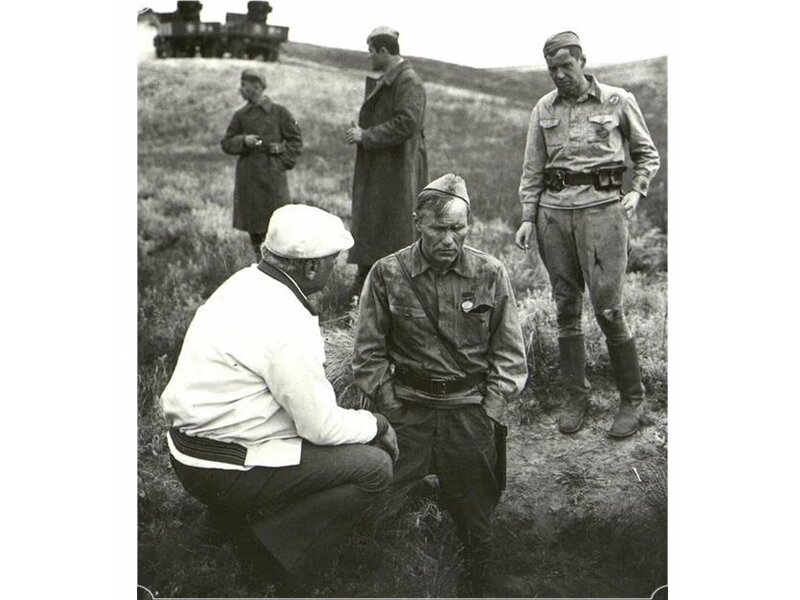 На этих фотографиях мы видим Георгия Буркова, фотографа Анатолия Ковтуна, Василия Шукшина, Петра Меркурьева, Сергея Бондарчука, Юрия Никулина на съёмках картины «Они сражались за Родину». Роль Лопахина в этом фильме Василий Шукшин не доиграл. Его не стало в последние дни съёмок. Озвучивал Игорь Ефимов, в оставшихся сценах вместо Василия Макаровича снимался Юрий Соловьёв, с которым они вместе учились во ВГИКе. На фото лето 1974 года, Волгоградская область, идут съёмки, все веселы, вдохновенны и увлечены любимым делом. Редкие таланты, вечные фильмы...
