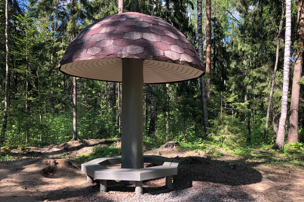 В Шуваловском парке (Санкт-Петербург) вырос пятиметровый гриб. Специалисты построили макет беседки XIX века