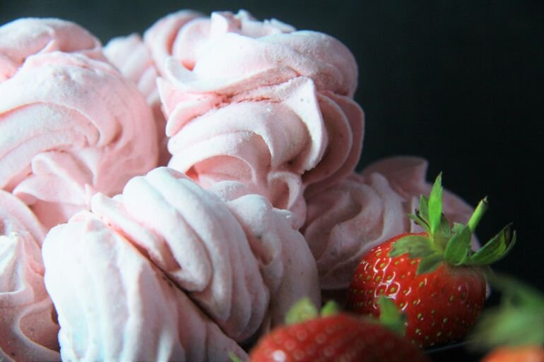 Заварной, без термометра и всяких заморочек. Отличный вариант зефира. Не нужен термометр! Готовить можно из свежей или замороженной клубники, не надо уваривать пюре и заморачиваться с приготовлением яблочного пюре, поскольку оно не добавляется в рецепте. Кроме того такой зефир намного быстрее стабилизируется! Рецепт несложный. Получится у всех 100%. Ингредиенты (14 крупных половинок, 500 г): Белок комнатной температуры- 2 шт. (65 гр.) Сахар - 100 гр. Соль-щепотка Агар-агар сила 900 - 9 гр. Сахар - 200 гр. Вода - 100 мл/гр. Клубничное пюре - 200 гр. Как приготовить: 1. Взбиваем белки: