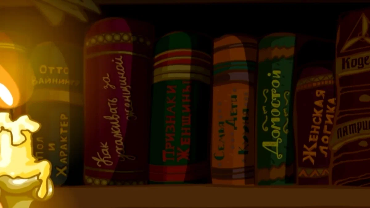 Всем бобра, с вами Хтонь. Весьма давно меня тут небыло. Во всяком случае попытаю удачу и может, жабка алгоритмов дзена чуть отпустит шею моего канала. Сегодня я расскажу вам о самых редких и незаменых отсылках в мультфильмах #2. Как говорил великий человек, Ю. А. Гагарин - "Поехали!" Книги из серии "Библиотека" В моменте серии "Библиотека", когда Нюша ищет кодекс патриарха можно заметить и другие книги. Многие из них выдуманы, но есть и несколько реальных представителей. Среди них "Домострой" и "Пол и характер" К слову, "Пол и характер" является одной из самых женоненавистничих книг. В ней женщина позиционируется как предмет без собственной логики и мнения. Луч В серии «Комната страха» Пин использует кинопроектор. Если присмотреться, то можно заметить на устройстве надпись «Луч». Кинопроектор «Луч», действительно, существовал в СССР и весьма часто использоволся. Холодильник "Зил" Продолжая тему советских вещей хотел бы рассказать о холодильнике марки Зил. Такие холодильники были очень