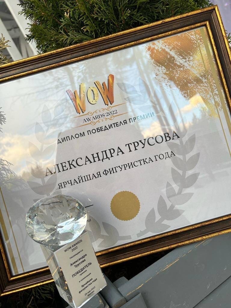 Фигуристка сборной России Александра Трусова очень яркая девушка. Спортсменка в этом сезоне на льду удивляла всех своими уникальными элементами, яркими программами и сильным скольжением. На днях Александра посетила премию одного известного журнала. В номинации «Ярчайшая фигуристка годы» она завоевала победу. Александра просто светится от счастья. Она опубликовала несколько кадров с этого красивого мероприятия: Это её награда. Выглядит очень стильно и эффектно! Есть и небольшое интервью Саши: Саша немного стеснялась, но это смотрелось очень мило. Она искренняя, скромная и вежливая. Она сказала, что профессионал должен обладать целеустремлённостью и терпением. Просто в невероятном образе на мероприятии была Александра. На ней был бледно-розовый необычный костюм и туфли. Волосы она распустила. Макияж был аккуратный, нежно подчёркивающий природную красоту. А маникюр фигуристка предпочла сделать очень яркий. Фигуристка на всех фотографиях лучезарно улыбается. С прекрасным настроением и нагр