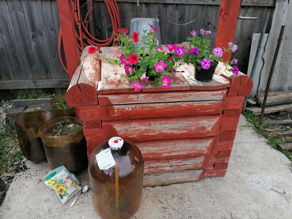 Приветствую на канале "Будни деревенской Чаровницы", на связи Юлия. Не забывайте пожалуйста подписаться и поставить "палец вверх"! Вам не сложно, а мне приятно. Когда есть обратная связь это вдохновляет на новые посты. Этот канал про нашу деревенскую, спокойную жизнь, полностью лишённую" гонки за успехом"! Здесь много красивой природы, душевности, доброты и спокойствия. Я обожаю цветы, они дарят ощущение счастья и радости. Выходишь утречком летом в любимый сад и сразу настроение поднимается. У нас много клумб, но мне хотелось чтобы ещё и зона рядом с колодцем была украшена. Окна нашей кухни выходят как раз на колодец и баню. Хочется приятным летним утречком пить чаёк и любоваться красотой Вокруг колодца практически всё забетонированно. Используется площадка под дровеник, кубовик и прицеп. Хочется выглянуть в окно и увидеть красивое пятно, а не вот это вот всё... 😆 Немного подумав, решила купить петуньи и посадить их в пивные кеги. муж подкинул идею Пивные кеги у нас в поселковой