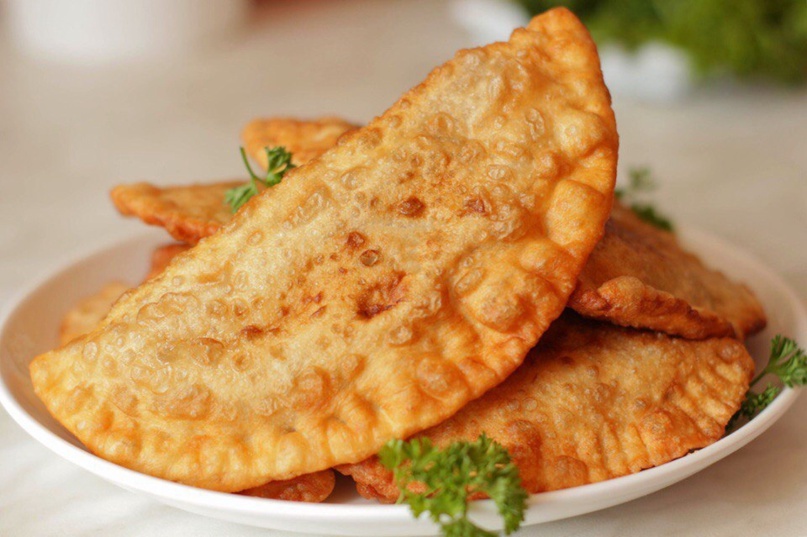 Ингредиенты: Заварное тесто. 1.Мука — 400 гр 2.Соль — 1 ч.л 3.Растительное масло — 40 гр 4. Вода (кипяток) — 200 гр Ингредиенты: Начинка. 1.Фарш — 500 гр 2.Лук — 1 шт 3.Вода — 100 гр 4.Соль — 1 ч.л 5.Специи по вкусу. ______________________________________________ Жарить в большом количестве масла. ______________________________________________