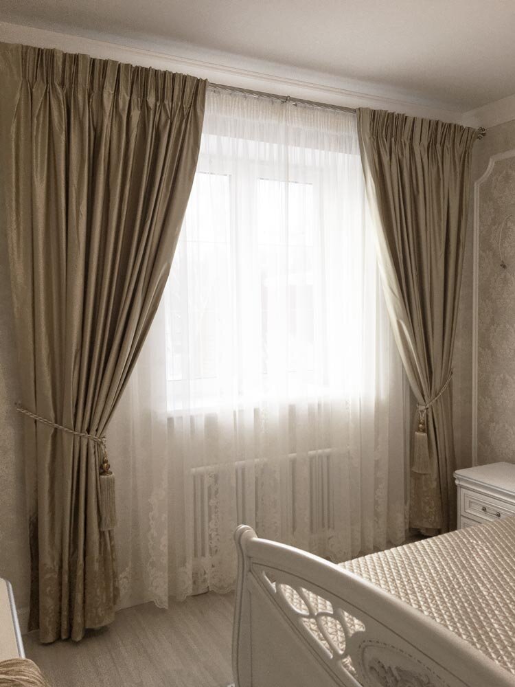 Проект штор о котором пойдет речь выполнен для одной из спален большого загородного дома в московской области. Хозяйка в диалоге с дизайнером, просмотрев множество вариантов, согласилась с предложениями по тканям штор, покрывал и подушек.