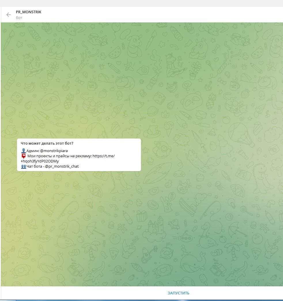 ЗАРАБОТОК В ТЕЛЕГРАМ БЕЗ ВЛОЖЕНИЙ Телеграм – популярный мессенджер, которым пользуется более 200 млн человек. За счет огромной концентрации пользователей он стал хорошим источником дохода. Существует много способов заработка в телеграм, расскажу об одном – заработке в ботах по заработку и продвижению. Для примера возьмем бот PR_MONSTRIK. Для заработка в боте необходимо перейти по ссылке https://t.me/pr_monstrik_bot?start=665170723, после чего нажать кнопку «ЗАПУСТИТЬ» И пройти простую капчу. Для дальнейшей работы, бот потребует подписаться на два канала: информационный канал и канал просмотров. В информационном канале вам будет сообщаться о новых заданиях в боте, в канале просмотров вы будете выполнять задания бота на просмотры постов. После того, как подпишитесь на каналы, жмем кнопку заработать и бот вам выдаст перечень заданий: Нажимаем на первую кнопку – подписаться на канал и переходим в задание, где жмем кнопку – перейти к каналу. Подписываемся на канал и в верхнем левом углу ж
