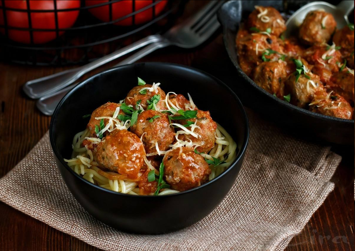 📖 Ингредиенты: - Фарш - 500 г. - Лук - 1 шт. - Чеснок - 1 зубчик - Яйцо - 1 шт. - Петрушка - 1 пучок - Сухари панировочные - 30 г. - Пармезан - 40 г. - Соль, перец, специи - по вкусу Для соуса: - Томаты в собственном соку - 400 г. - Черри - 100 г. - Чеснок - 3 зубчика - Бульон - 300 г. - Соль, перец - по вкусу - Растительное масло 🧑🏻🍳 Приготовление: 1. Измельчить лук и чеснок, добавить к фаршу. Ввести яйцо, панировочные сухари, натертый сыр, измельченную петрушку. Посолить, поперчить, добавить специи и перемешать. 2. Сформировать из получившейся массы шарики. 3. Запечь в разогретой до 230° духовке 10-15 минут. 4. Мелко нарезать чеснок. Обжарить на сковороде. 5. Затем добавить нарезанные помидоры черри. Обжарить 2 минуты и ввести томаты в собственном соку, бульон, соль. 6. Выложить в соус запеченные фрикадельки и тушить еще 10 минут.