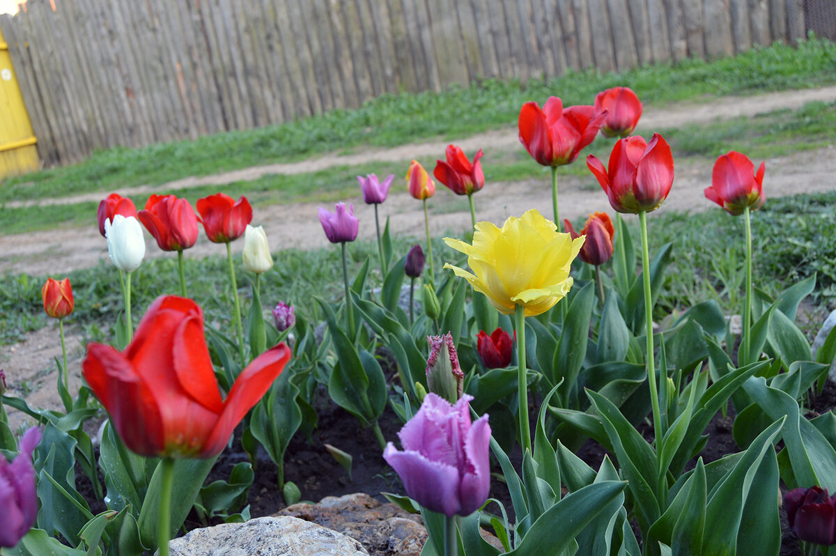 Множество статей и видео моих дружественных каналов посвящено тюльпанам. Я решила идти в ногу со всеми. Стадное чувство никто ещё не отменял. Вот и я решила похвастаться красотой из провинции. Не одного названия тюльпанов я не знаю. Просто покупала вместе с семенами те, что понравились на картинке. Некоторые доставались мне как благодарность за какое-нибудь благое дело. Некоторые я обменивала с соседями. Некоторые луковицы получала в подарок, когда решила отказаться от букетов. А так как день рождения у меня приходится на время посадки тюльпанов, то и само-собой в подарок получала именно их. К сожалению некоторые тюльпаны частично переопылились. Знающие люди сказали, что от того, что неустойчивые цвета были у моих цветочков. Но от этого они стали ещё красивее. Надеюсь в первый день лета вы были рады получить от меня вот такой букет гагаринских тюльпанов. Полистайте галерею и зарядитесь красотой. Если вам понравился мой подарок, поставьте пальчик вверх. Если знаете название тюльпанов