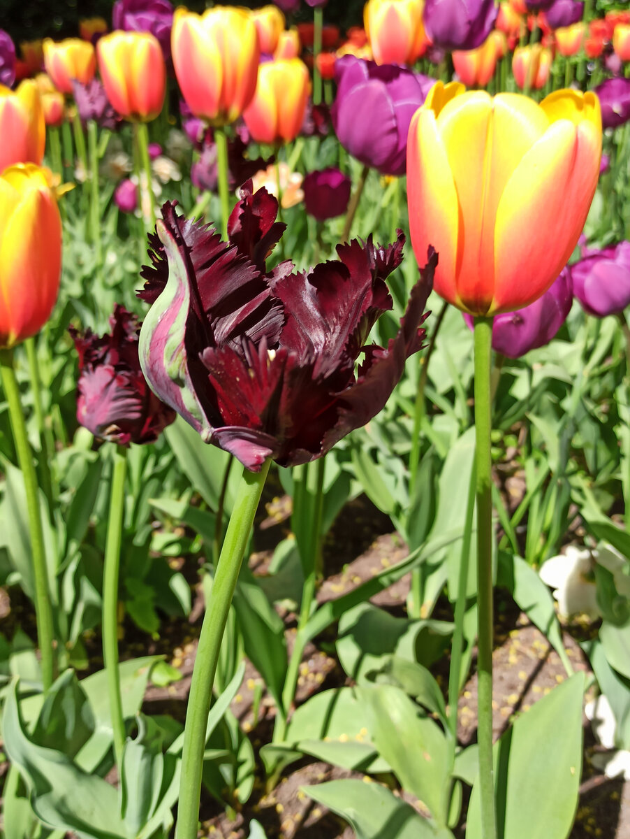 Продолжаю показывать вам разнообразные тюльпаны с фестиваля на Елагином острове. Первую часть смотрите здесь. Открывает сегодняшнюю подборку махровый тюльпан насыщенного бордового цвета: Очень понравилось это сочетание желтых тюльпанов и сине-фиолетовых гиацинтов. А вам как? Листайте галерею и пишите в комментариях) Чудесная клумба (ну и что, что возле туалета)), где представлен целый калейдоскоп цветов и оттенков. Удивительно, что выглядит это всё равно красиво) Листайте галерею! Дальше ныряем в красно-желтое море: Каждый цветок можно рассматривать как произведение искусства: Помимо разнообразия цветов, обратите внимание на разнообразие форм: А вот некоторые кустовые тюльпаны еще не распустились: Встречаются такие интересные находки, как этот тюльпан с красной полосой среди своих белоснежных собратьев) А здесь тюльпаны соседствуют с нарциссами: Потрясающие ОГРОМНЫЕ цветы! Разбавим желтый розовым и красными: Розовый тоже бывает разным (листайте галерею): Что ж, все хорошее (впрочем, к