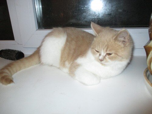 Котик оказался очень спокойным и беспроблемным, любил когтеточку, был чистоплотным и аккуратным, знал лоток на 5+. Как и предполагалось, мальчуган долго не засиделся, и в скором времени отправился в новый дом.