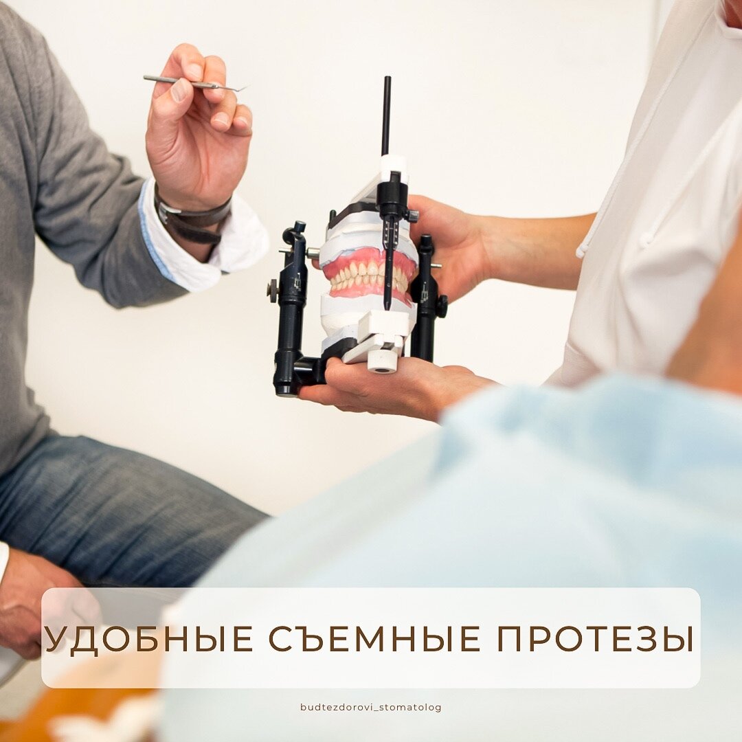 В данной конструкции отсутствует небо, за счет этого привыкание будет значительно быстрее. Удерживается на оставшихся единицах с помощью коронок из пластмассы. Съемная конструкция актуальна, когда у пациента полная адентия и важно при подборе типа протеза учитывать материал, который не вызывает аллергию и восстановит жевательную функцию. Протез Acry free или другие конструкции из термопластичных гипоаллергенных материалов будут самыми оптимальными, но обязательно подробно узнавайте у ортопеда, что для вас будет самым подходящим. В следующих постах остановимся на каждом типе подробнее.