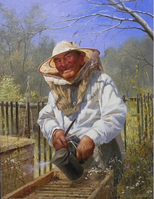 Дымарь гоняет золотистых пчёл