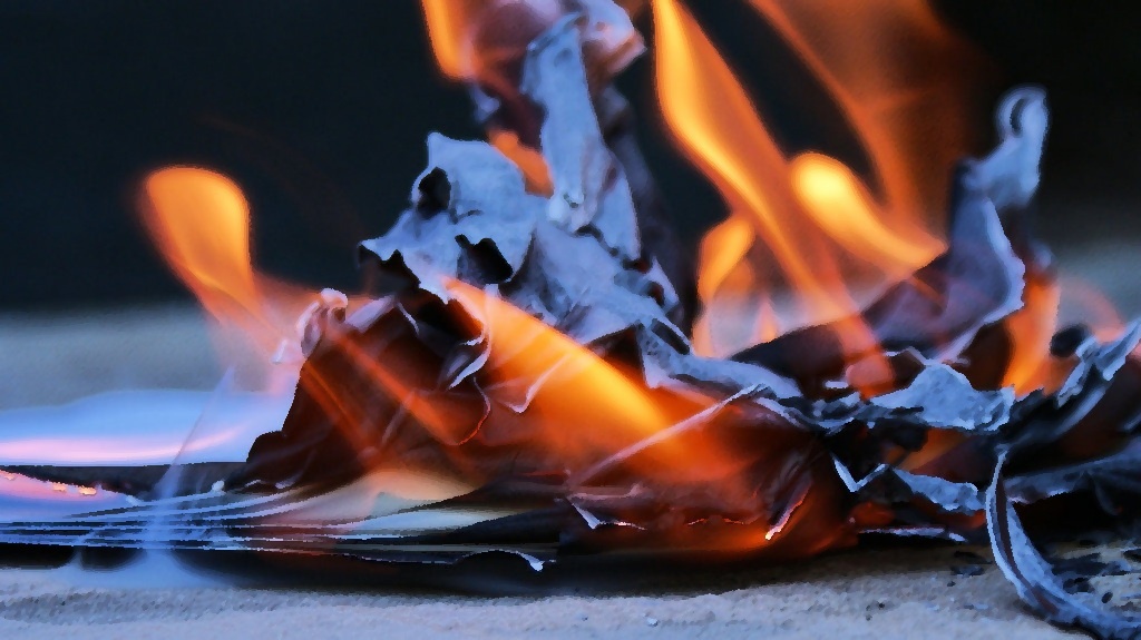 Далее вы берете ножницы, разрезаете этот лист на мелкие кусочки, после чего кладете их в тарелку или блюдце и поджигаете.