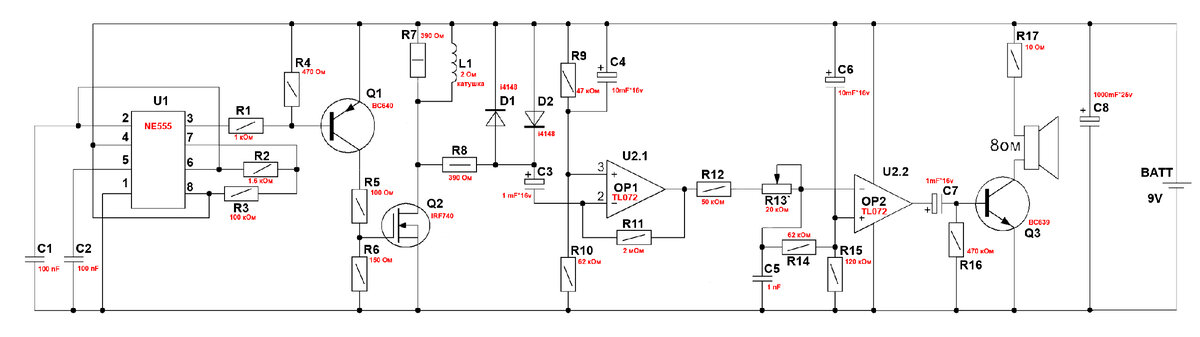 Самый простой металлоискатель (в инете как Пират) на современных компонентах. Немного вводных : срабатывает примерно на ~25-30 см , регулировка чувствительности (фон) и выход под наушники или внешний динамик. Схема ( с изменениями) : Далее ЛУТ : После раскидываем компоненты : Собираем и проверяем : Всё замечательно гудит, идём мотать катушку , все пишут про 20-22 витка на радиус 20см и с параметрами типа в 2 Ом и 406 mH (микрогенри = 0.4 миллигенри) Матаем как угодно ~ 20 витков и вышло : 1.1 Ом = 150 микрогенри (0,15 миллигенри) , хотя рекомендовалось согласно таблице 26 витков (но не играет толком роли) Получаем это: в итоге получаем это : Ссылка на ПП