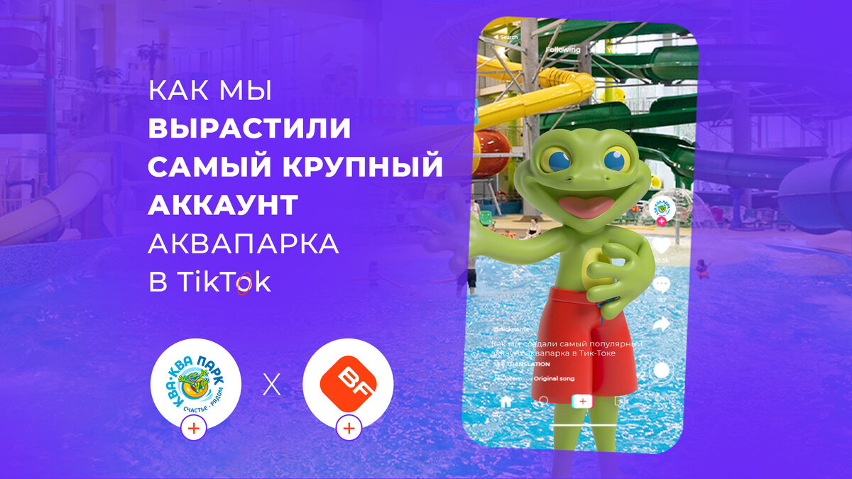 Описание «Ква-Ква Парк» — один из крупнейших аквапарков в Москве и Московской области. Клиент обратился к нам за ведением социальных сетей, и мы предложили создать профиль в TikTok. Задача Предложили клиенту выйти в TikTok: предстояло не только определить эффективные форматы коммуникации с целевой аудиторией, но и найти коммерческую выгоду новой платформы — способы привлекать реальных посетителей в «Ква-Ква Парк». Запуск Провели рисерч контента платформы и определили, какие ролики попадают в реки. На старте мимикрировали под тренды, и за первый квартал получили такие результаты: