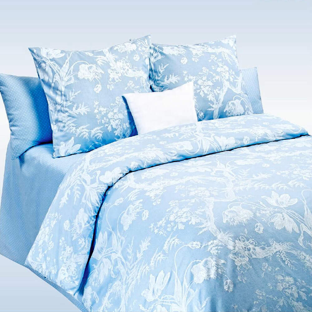 Постель голубых оттенков способствует успокоению, расслаблению после напряженной умственной работы.