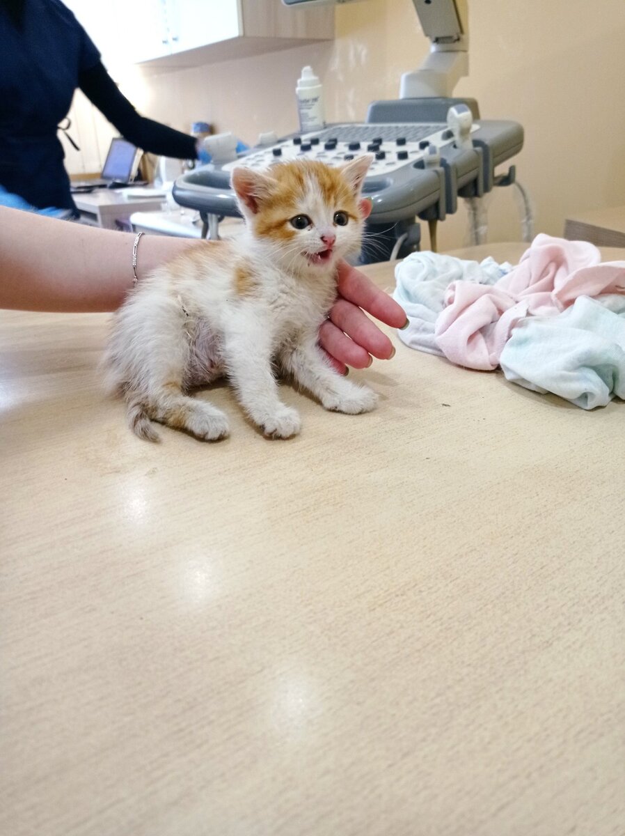 Стационар волонтеров! Котенок Лео. Девушка Настя увидела маленького котенка, у которого были проблемы с задними лапками, плачущим на улице... Осмотр в клинике показал: лапки пальпаторно нормально. Есть подозрения на травму позвоночника (что более вероятно) или таза. Но он ещё такой маленький, что исключает оперативное вмешательство. Есть ссадины на животе, плюс очень наполнен мочевой пузырь, что так же говорит о возможных проблемах позвоночника. Сейчас назначены уколы, через неделю осмотр и консультация у травматолога.
