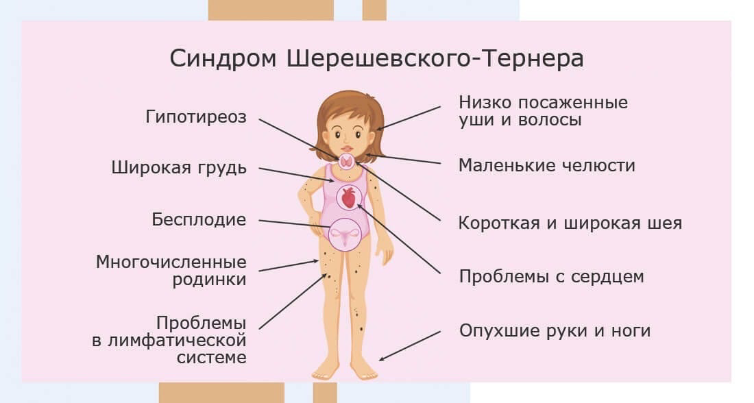 Следующей хромосомной аномалией рассмотрим синдром👇🏻 ✅Синдром Шерешевского- Тернера - это хромосомное заболевание, для которого характерно либо полное отсутствие одной хромосомы, либо наличие дефекта в одной из Х - хромосом. ☑️ЧАСТОТА: 1:2000- 1:2500 новорожденных девочек ✅ПРИЗНАКИ: 1. Фенотипические особенности: птоз, эпикант, нистагм; высокое (готическое) небо; микрогнатия (маленькая челюсть); деформация ушной раковины. 2. Множественные пороки развития: пороки сосудов сердца (стеноз устья аорты, дилятация аорты, аневризма), пороки почек («подковообразная» почка, аплазия почки, аномалии сосудов почек). 3. Низкий рост. 4. Задержка полового развития. ☑️ДИАГНОСТИКА: 1. Наличие фенотипических признаков синдрома. 2. Кариотип: 45 Х или другие варианты. 3. Дисгенезия гонад: по УЗИ недоразвитие матки и яичников; повышение уровня ЛГ, ФСГ крови; аменорея. ✅ЛЕЧЕНИЕ: С каждым ребёнком специалисты работают индивидуально, в зависимости от тяжести патологий. Лечение, в основном, симтоматичес