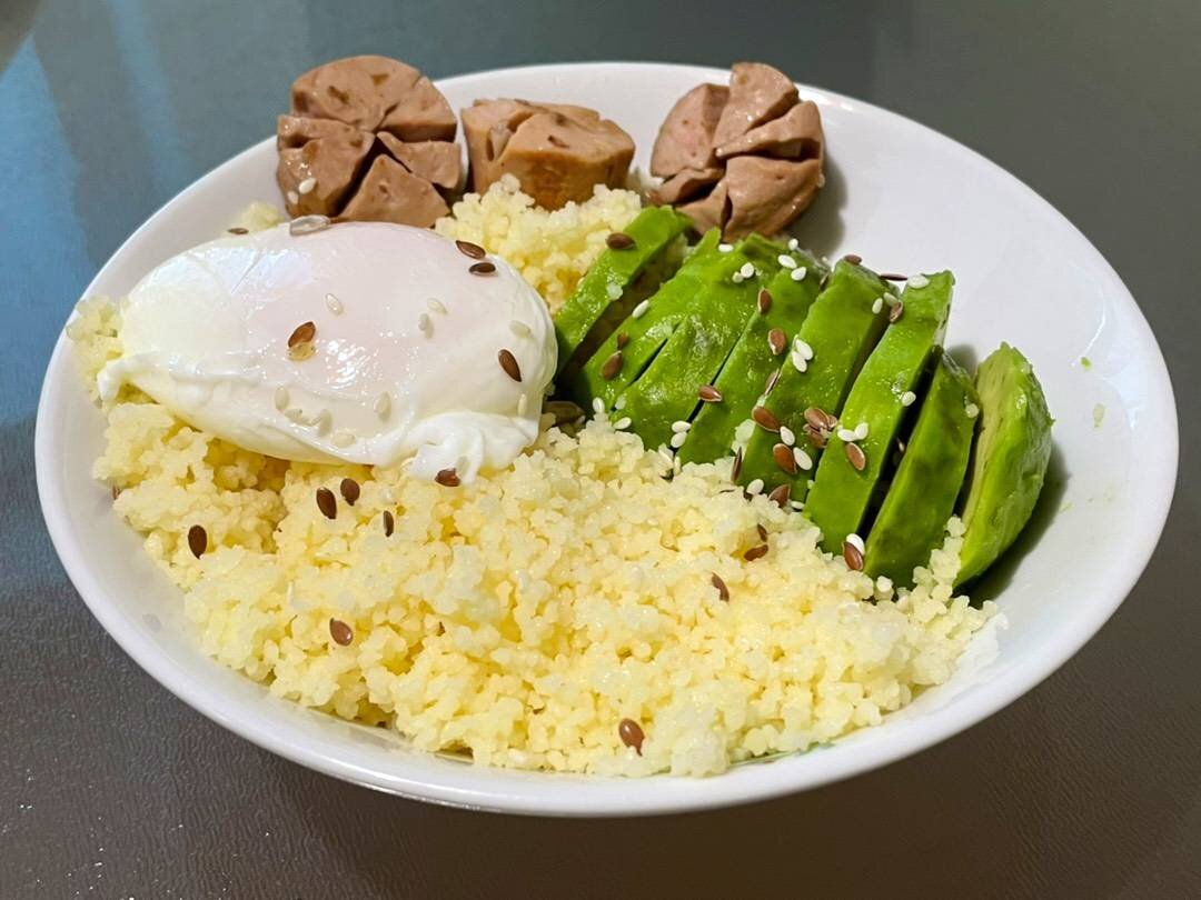 #традиции #тольятти Быстро! Вкусно! Сытно! Ингредиенты: Кускус, Авокадо, яйца, тунца в собственном соку, вяленых томатов (по желанию), Базилик для подачи, Кунжут для подачи, Оливковое масло или масло авокадо Способ приготовления: Кускус посолить, добавить 1 ч. л. масла, залить кипятком 1 : 2 и оставить на 5 минут. Подготовить и нарезать все ингредиенты, которые нам нужны. Для яйца пашот разбить яйцо в небольшую ёмкость, в кипящей воде сделать воронку, поднести ёмкость к воронке и аккуратно добавить яйцо. Варить около 3 минут. В готовый кускус добавить помидоры, листья базилика, тунец и хорошо перемешать. Выложить всё в тарелку. Подавать с авокадо и яйцом пашот, украсив свежим базиликом и кунжутом.