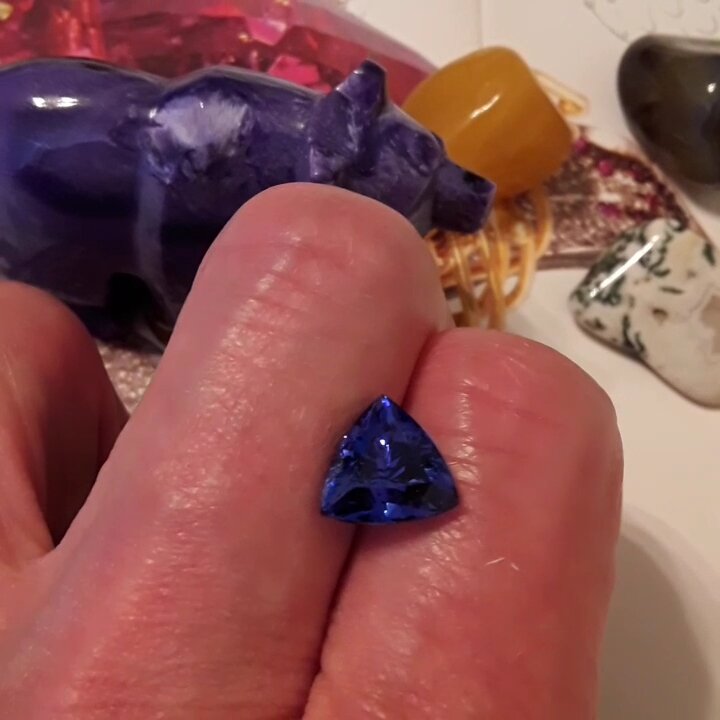 Идеальный Танзанит. Огранка «Триллион». Происхождение: «Танзания» Размеры: 10.56 * 10.56 * 7.29 мм. Облагораживание: Термообработка. Цена: 2 430 $ (550 $ за один карат) Приветствую вас, дорогие друзья! Этот камень в наличии, его можно купить, и он действительно идеален! Во-первых – высокоточная Российская огранка, обеспечила яркую игру и колючий блеск. Во-вторых – идеален цвет камня, насыщенно-синий как у сапфира цвет, является «топовым» для танзанитов. И самым дорогим, соответственно😉 В танзанитах, всегда сочетаются два цвета - синий и фиолетовый. При смене угла зрения, превалирует то один, то другой оттенок. Чем сильнее фиолетовая гамма, тем танзанит дешевле, и наоборот😊