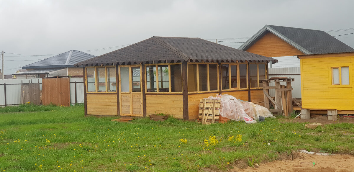 Я построил вот такую, 6х6 м., что бы потом внутри построить мангал BBQ