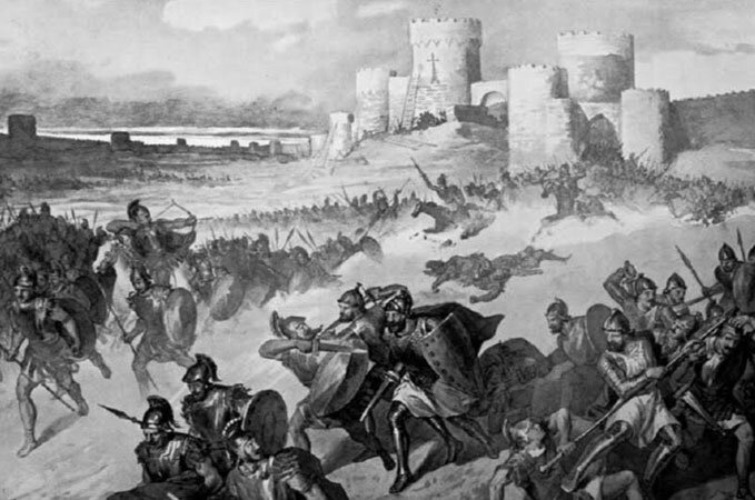 То что произошло относительно недавно между Азербайджанцами и Армянами а именно резня в 1918м году (об этом писал в предыдущей статье) -это первая стычка на национальной почве но Армяне считают что вражда длится уже несколько веков с момента появления Тюрков в этом регионе. И Армяне считают что вражда появилась именно между Тюрками и Армянами, что другие национальности Азербайджана и Турции к этому конфликту отношения не имеют. Теперь обратимся к истории, действительно ли Тюрки своим появлением помешали Армянам в чем либо или же пытались уничтожить Армян или Армению? Картина "Армяне отражают атаку Византии" Армянское царство почти всю свою историю подвергалось захватам Римлян, Византии и Персов. Первое разделение Армении произошло 387 году между Сасанидским государством(персами) и Римлянами. Далее в 6-м веке армянские земли были захвачены Арабским халифатом до момента когда Халифат ослаб и армяне создали Царство Багратидов в 922году, но опять были захвачены Византийцами 1045году и