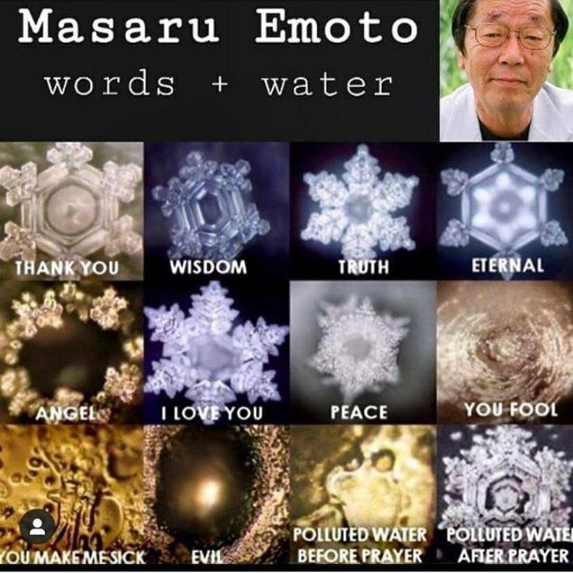 Японский исследователь Масару Эмото провёл многочисленные исследования влияния на воду различными факторами. Вода предварительно подвергалась следующим видам воздействия:⠀ Причём писали и говорили на различных языках.⠀ ⠀ После каждого опыта воду быстро замораживали между двумя стеклянными пластинками. Быстрота нужна, чтобы молекулы воды не успели перестроиться в стандартную структуру льда и сохранили своё расположение, полученное при внешнем воздействии.⠀ ⠀ Если рядом с водой произносилась ругань, писались ругательные слова, звучала тяжёлая музыка, находились некрасивые картинки, то структура воды сильно искажалась, и получались фотографии уродливых кристаллов. То же получалось, если люди рядом с водой выражали негативные эмоции или даже о чём-то невежливо просили воду.⠀ ⠀ ❤️ Если же говорились или писались хорошие слова, звучала классическая музыка и т. д., то получались фотографии красивых кристаллов льда. Из всего этого делались выводы не только о существован
