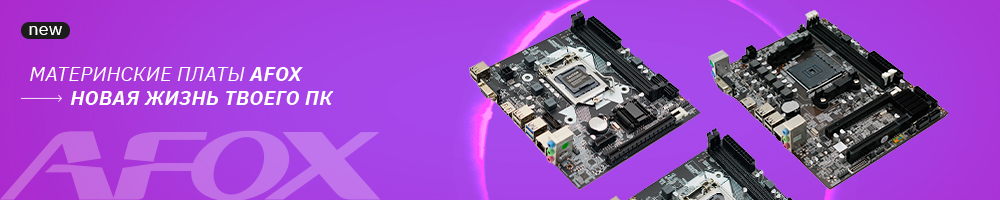 В каталоге появились материнские платы AFOX на популярных сокетах прошлых лет: FM2+, LGA 775, LGA 1155, LGA 1150 и LGA 1151. Они будут интересны в первую очередь как основа для бюджетных офисных ПК, ТВ-приставок либо в качестве замены вышедшей из строя платы. На материнские платы действует гарантия 2 года. Расскажем подробнее о моделях плат AFOX. AFOX A88-MA2 Материнская плата AFOX A88-MA2 с сокетом FM2/FM2+ для недорогих ПК на базе процессоров AMD с микроархитектурой Trinity, Richland, Kaveri и Godavari. Характеристики: AFOX IG41-MA7-V3 Материнская плата AFOX IG41-MA7-V3 с легендарным сокетом LGA775. Она совместима не только с десктопными процессорами Intel Core2Duo и Core2Quad, но и серверными Xeon. И хотя «Ксеоны» рассчитаны на сокет LGA771 (серверный вариант LGA775), их можно установить на данную плату без каких-либо доработок. Всё благодаря расширенным пазам для ножек процессора и джамперам для выбора серверного процессора. Ещё одна интересная особенность AFOX IG41-MA7-V3 касается