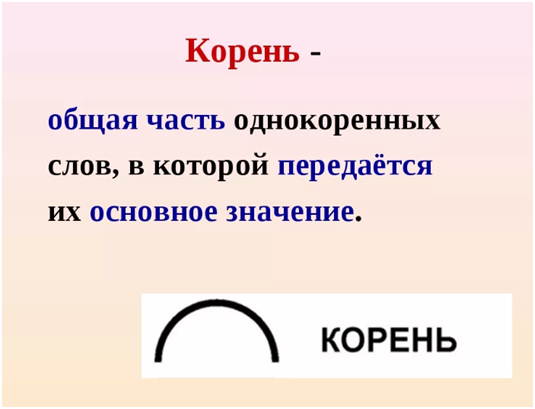 Корень – главная значимая часть слова, в которой заключено общее лексическое значение однокоренных слов.